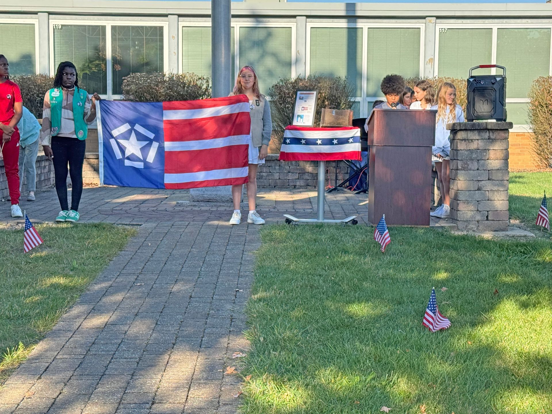Led by sixth graders during the 9/11 Patriot Day ceremony at the middle school, the flag was raised as a reminder of the victims, heroes and survivors of that day. First responders from the Willoughby Fire Department and Police Department were also in attendance.