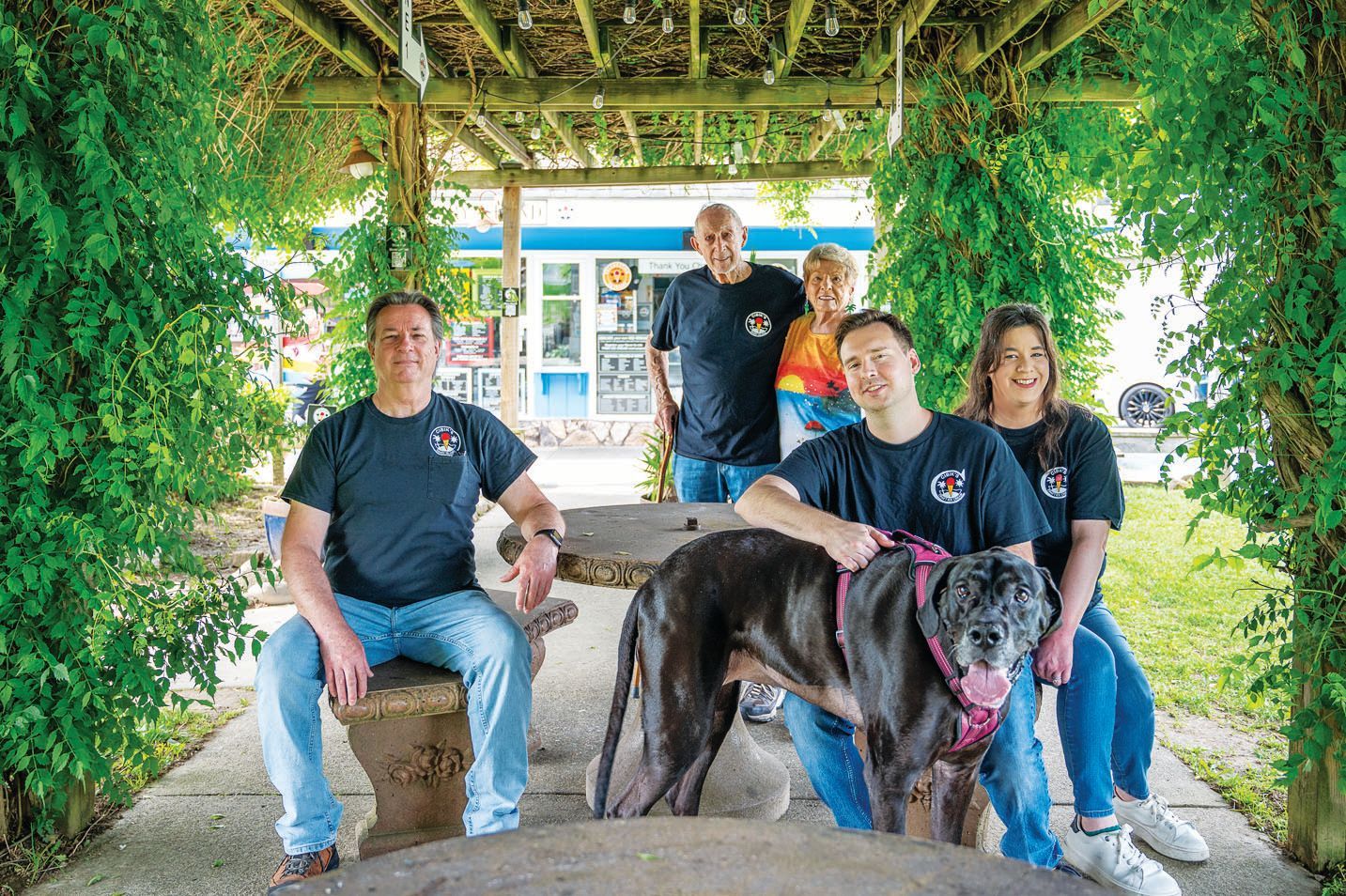 For every era at Cibik’s Dairy Island, there has always been a Cibik at the helm, building upon what the Cibik before them created. Pictured L-R: Rick, Rich, Elaine, Jake, Maggie and their beloved ginormous dog Luna, nicknamed The Dairy Daniff. (Photography: Adrienne Rose)