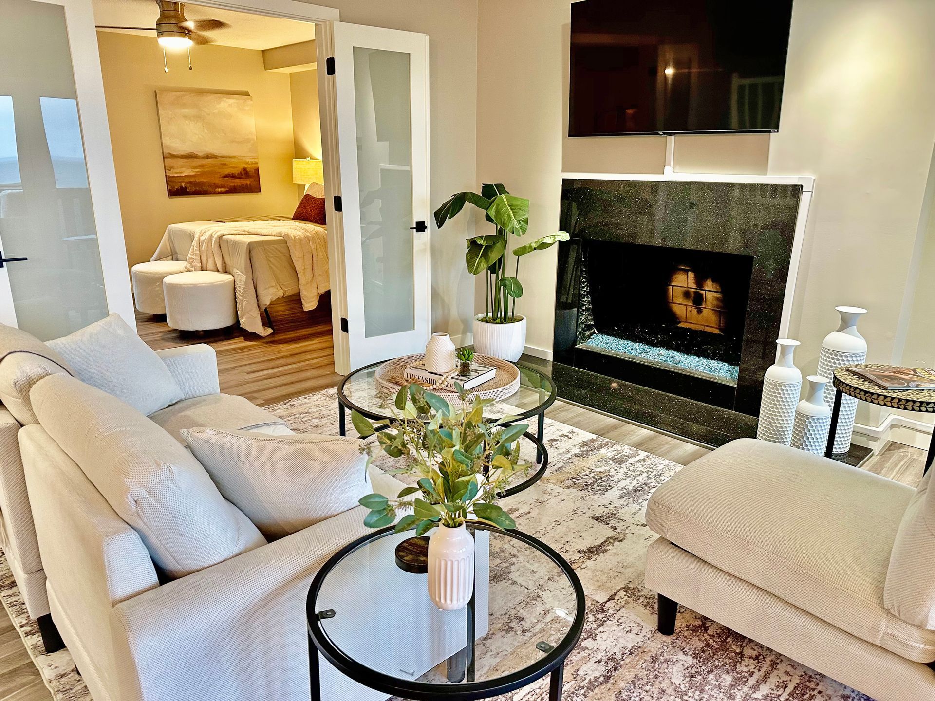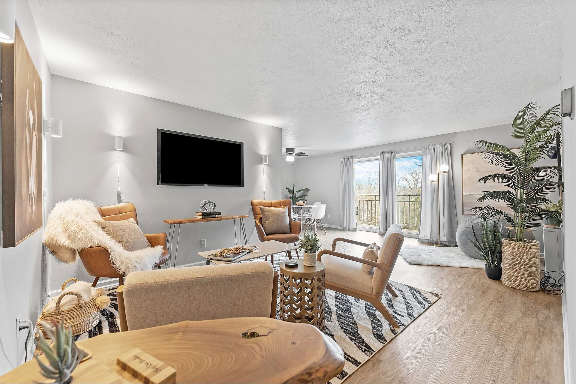 Transformed by Katy’s staging service, the living room at 460 Darby’s Run now shows its full potential.