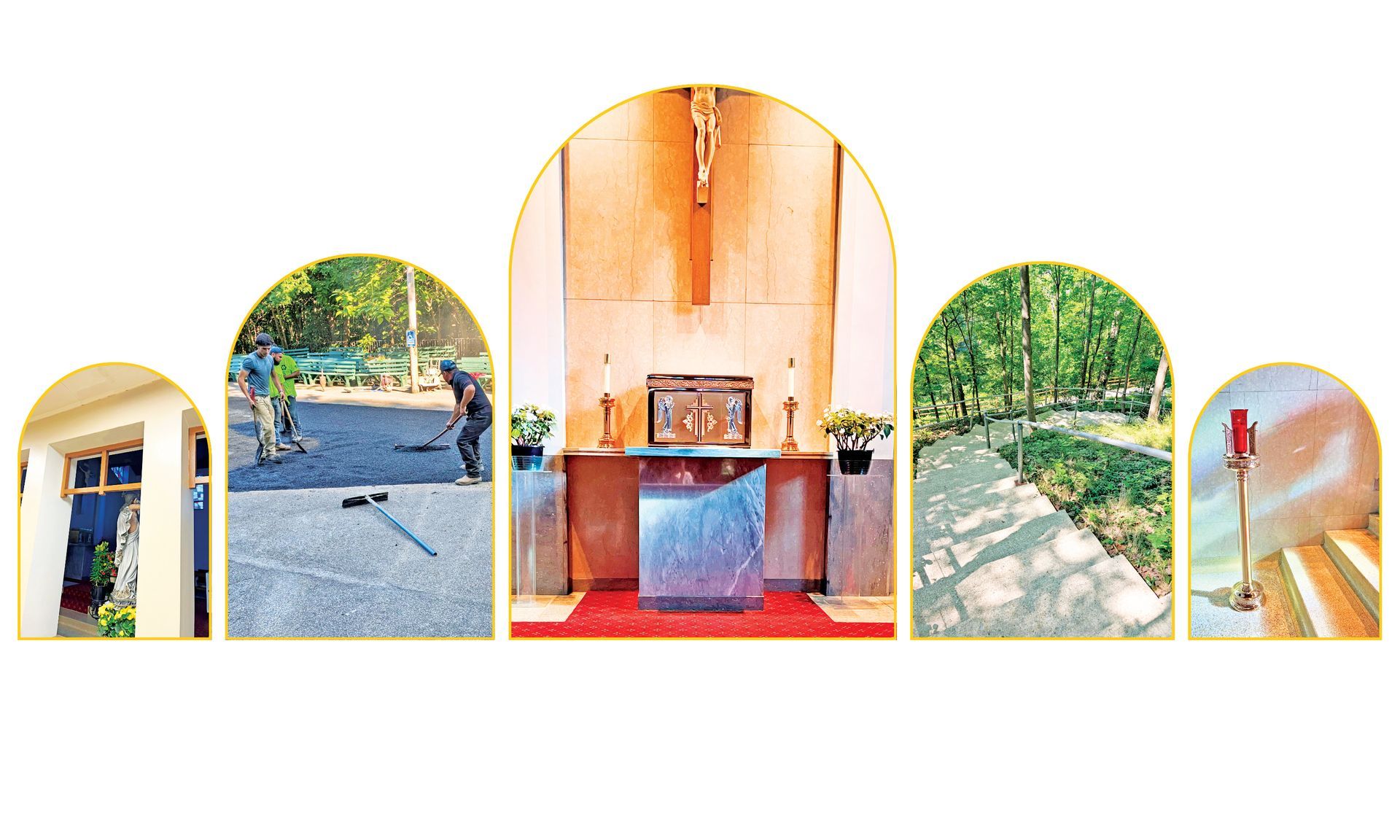 “We’ve rebuilt our prayer steps, railings, gates and pipes, as well as renovated the tabernacle and altar railing in the chapel,” she says. “We hope to refurbish the kneelers and benches, as well as lay Nature Stone in the Grotto before the weather becomes inhospitable.”