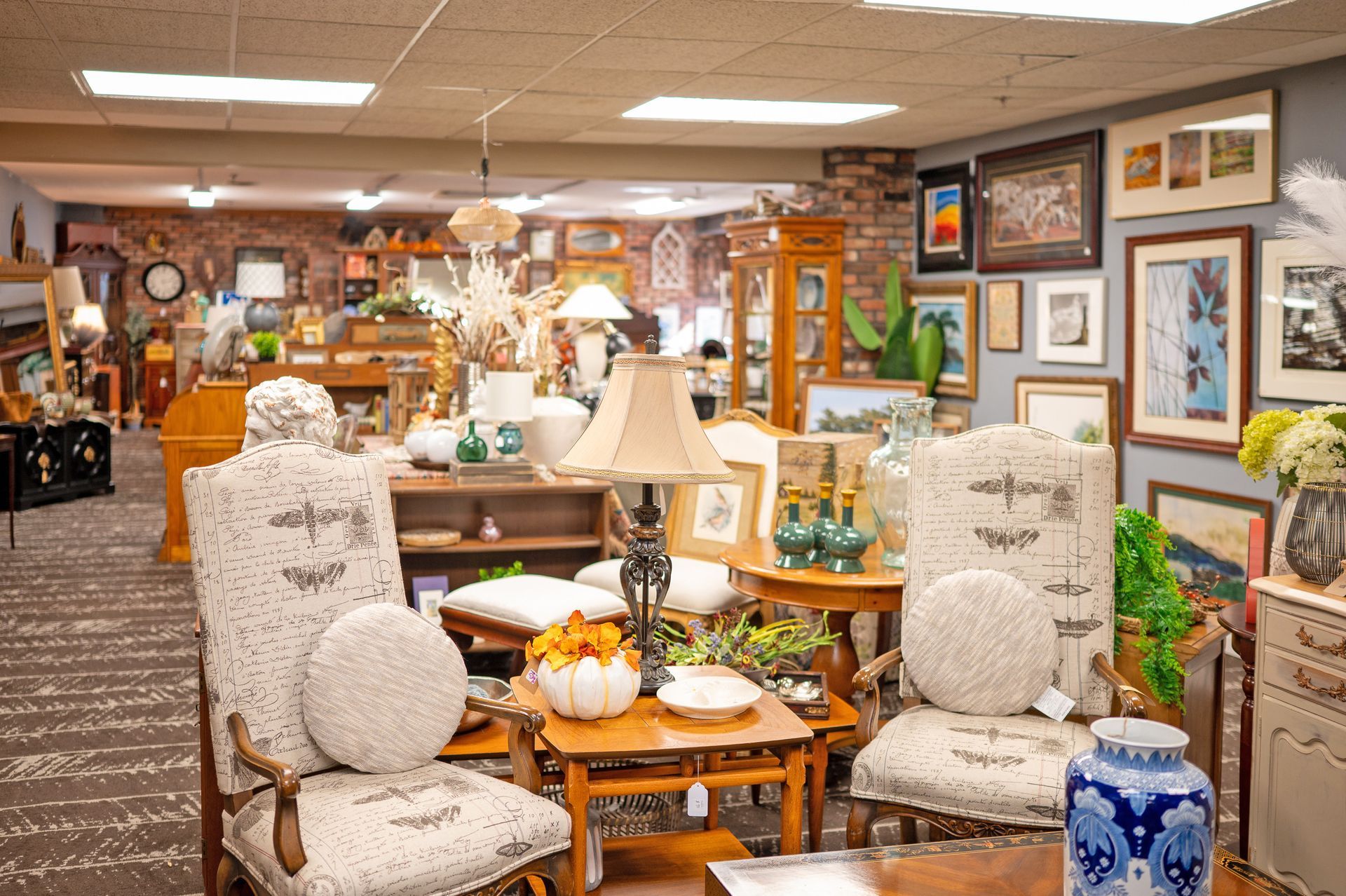 The expansive shop features fine furniture, vintage collectibles, antiques, wall art, vases, sculptures, mirrors, tableware, wood signs, barware and jewelry.