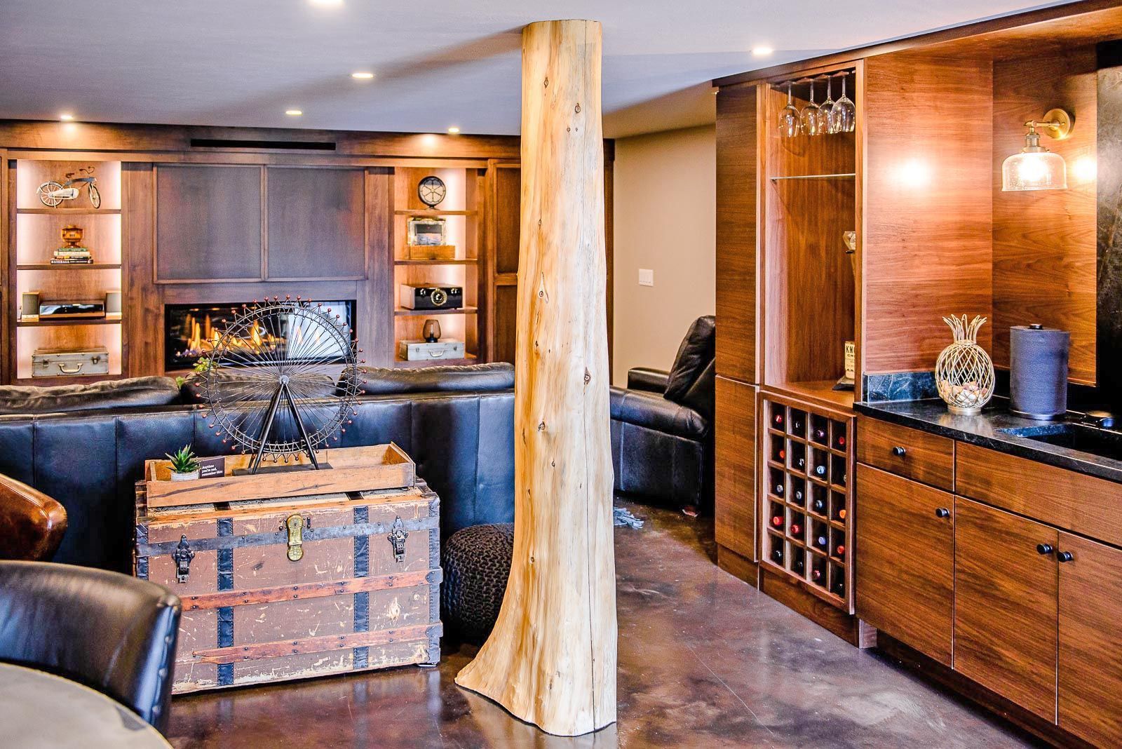 When it comes to high-end custom design, Project Developers Isaiah Slabaugh and Ryan Schwartz have built a reputation for going above and beyond to bring a client’s vision to life. They mention a rustic, mid-century modern basement renovation where the client wanted the steel support posts to be encapsulated by real trees. Ryan and Isaiah found someone in Louisiana to split cedar logs, then debark and kiln-dry them so they could be seamed back together. The final effect was breathtaking.
