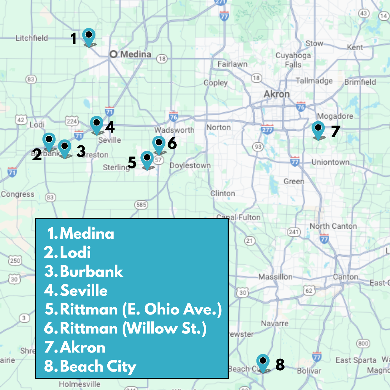 To service the Wadsworth area, Rent Rite has locations nearby south in Rittman, north in Medina and east in Akron. There is also a facility in Beach City, which is between Wooster and Sugarcreek, and future locations are planned for Lodi, Seville and Burbank.