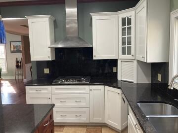 Joe invested in a dedicated, high-tech, cabinet painting facility with the latest in spray painting equipment originally designed for high-end car painting.