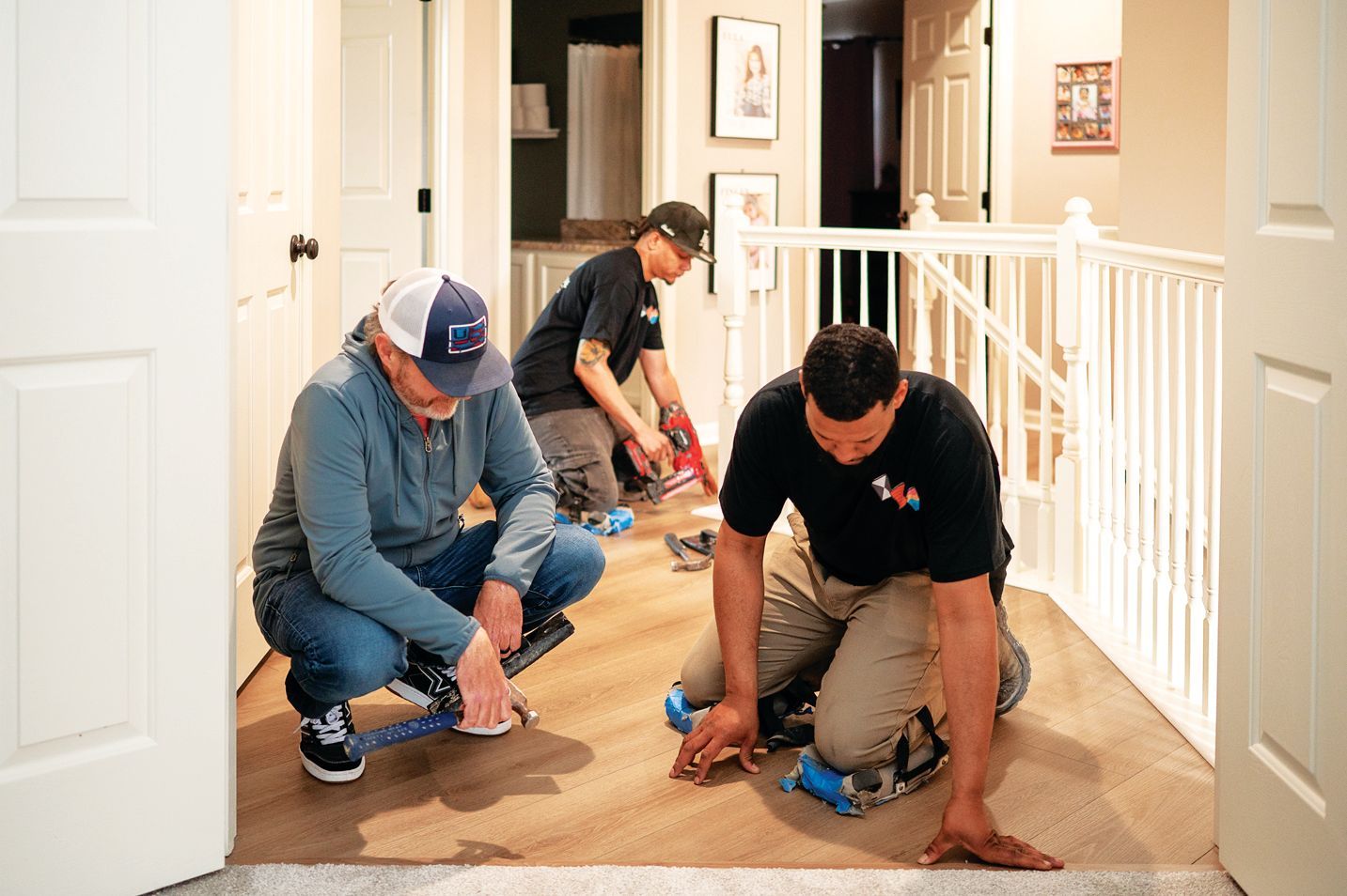 Whatever flooring the homeowner selects, the crews go the extra mile when it comes to finishing details. They make sure the baseboards and trim work are done right.